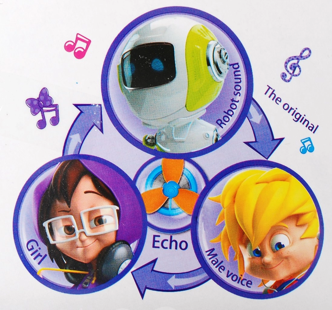 Probiere verschiedene Stimm-Modi – von Echo bis Roboterstimme – und verwandle jeden Auftritt in eine Show voller Lachen und Kreativität.