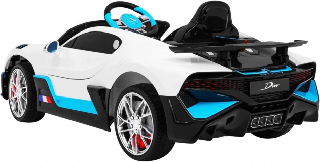 Schenken Sie Kindern Fahrspaß wie in einem echten Supersportwagen. Der BUGATTI Divo überzeugt mit ikonischem Design, zu öffnenden Türen mit Verriegelung und einem bequemen Sitz aus schwarzem Kunstleder mit Sicherheitsgurten. Sanftes Anfahren ohne Ruckeln sowie zwei Vorwärts- und Rückwärtsgeschwindigkeiten erhöhen Komfort und Sicherheit.