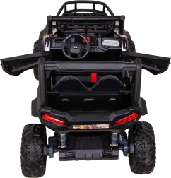Erleben Sie großartige Offroad-Abenteuer mit dem elektrischen UTV-Fahrzeug. Zwei leistungsstarke Motoren 2×200 W, ein 24V-Akku und verstellbare Stoßdämpfer (vorne und hinten) sorgen für eine sanfte und stabile Fahrt selbst auf unebenem Untergrund. Weiche EVA-Räder 34×15 cm dämpfen Vibrationen hervorragend und bieten maximalen Komfort.