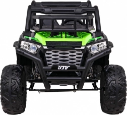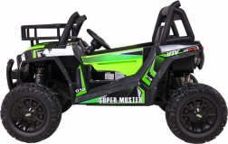 Das geländegängige Kinder-UTV in attraktiver grüner Farbe ist für Abenteuer gebaut. Zwei starke 2×200-W-Motoren in Verbindung mit einem 24-V-7-Ah-Akku liefern genug Kraft auch auf unebenem Untergrund. EVA-Schaumräder 34×15 cm dämpfen Vibrationen, und zusammen mit der Federung 2× vorn und 2× hinten bieten sie eine komfortable und stabile Fahrt.