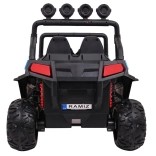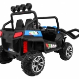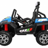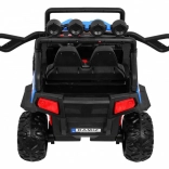 Das elektrische Kinderauto GRAND BUGGY 4x4 ist für kleine Rennfahrer konzipiert, die Abenteuer lieben. Dieses elegante blau-schwarze Fahrzeug im Offroad-Design bietet Sicherheit und Komfort mit belüfteten Sitzen aus veganem Leder und einstellbaren Gurten.