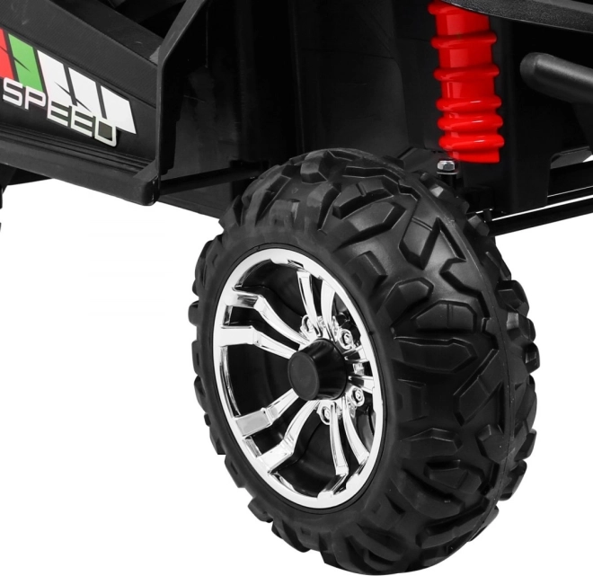 Der Kinder Geländewagen Grand Buggy 4x4 ist so gebaut, dass er anspruchsvolle Geländebedingungen meistert. Dank der vier starken Motoren und der großen EVA-Schaumräder bietet er hervorragende Traktion und Stabilität auf verschiedenen Oberflächen.