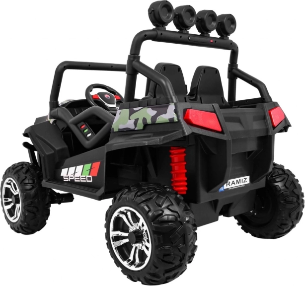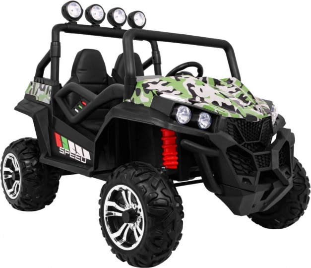 Das elektrische Kinderauto Grand Buggy mit 4x4 Antrieb und Tarnmuster ist ideal für alle kleinen Abenteurer. Mit robustem Design, LED-Scheinwerfern und realistischen Details ist es für lange Stunden Spielspaß und sicheres Fahren konzipiert. Enthält: