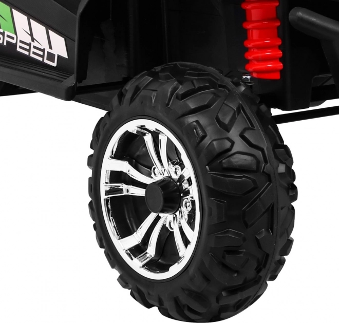Das elektrische Auto ist mit großen Geländereifen und einem robusten Rahmen ausgestattet, was Sicherheit und Widerstandsfähigkeit beim Fahren im Gelände gewährleistet.