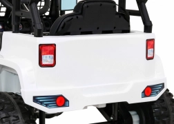 Die Elternkontrolle gewährleistet eine 2,4 GHz Fernbedienung mit drei Geschwindigkeiten und STOP-Taste. Kleine Fahrer freuen sich über LED-Lichter, ein realistisches Lenkrad mit Hupe und Melodien sowie ein Audio-Panel mit USB und AUX für Lieblingssongs.