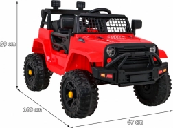 Für Sicherheit sorgen Sicherheitsgurte, die 2,4-GHz-Fernbedienung für Eltern mit Not-STOP-Taste und eine hochwertige Konstruktion. Das Audio-Panel mit USB und AUX ermöglicht das Abspielen von Lieblingsliedern; Tasten mit Melodien und einer Hupe befinden sich direkt am Lenkrad. Öffnende Türen und der Sitz aus Öko-Leder erfreuen Kinder und Eltern gleichermaßen.