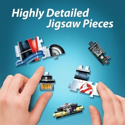 Bauen Sie Ihr eigenes 3D-Modell des legendären Autos Ecto-1 aus dem Film Ghostbusters! Dieses dreidimensionale Puzzle von Wrebbit vereint Spaß, Herausforderung und kreatives Erlebnis. Dank spezieller Puzzlestücke hält das Puzzle fest ohne Kleber.