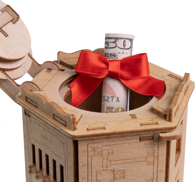 Fort Knox Pro Holzpuzzle führt Sie in die Welt der Abenteuer und Logik ein. Dieses komplexe Puzzle stimuliert nicht nur Ihre Kreativität, sondern bietet auch Raum zur Aufbewahrung kleiner Schätze. Der Bausatz ist eine Herausforderung, die Sie immer wieder zerlegen und zusammenbauen können.