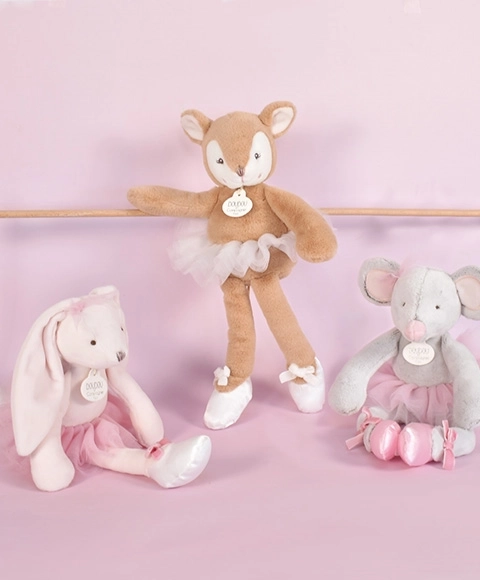 Diese sehr weiche Plüschmaus ist in einem Ballettkostüm mit Tüllrock und satinbesetzten Ballettschuhen gekleidet, verziert mit einer Samtschleife. Sie bietet Kindern eine Mischung aus sanften und trendigen Farbharmonien, die kleine und größere Kinder ansprechen. Sie ist ideal nicht nur für das Spielen zu Hause, sondern auch für Spaziergänge.