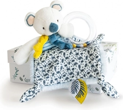 Dieses wunderschöne Geschenkset enthält den Plüsch-Koala Yoca, der der ideale Begleiter für Babys ab der Geburt ist. Es bietet ein Gefühl von Sicherheit und Komfort dank seines weichen Materials. Eine Rassel mit Perlen im Inneren des Rings sorgt für Stimulation und Unterhaltung für die Kleinsten.