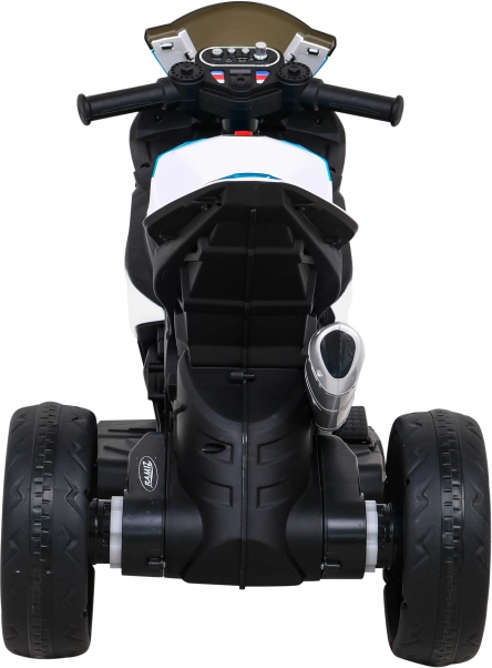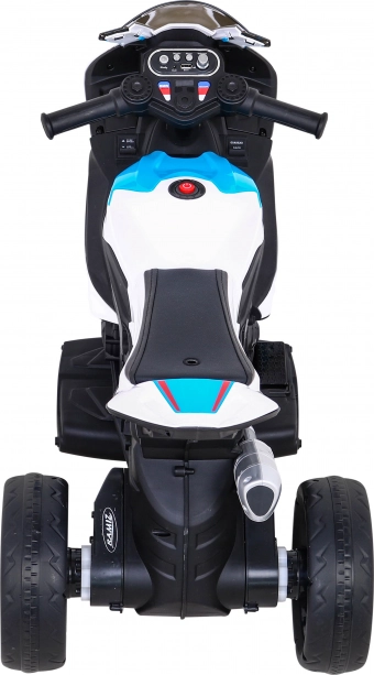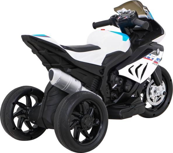 Dieses elektrische Kinder-Motorrad BMW HP4 in Weiß kombiniert sportliches Design mit der sicheren Stabilität von drei Rädern. Zwei Motoren 2×35 W und ein Akku 12 V 4,5 Ah sorgen für eine sanfte Fahrt vorwärts und rückwärts mit 2 Geschwindigkeiten, während die vorderen LED-Lichter einen realistischen Effekt und bessere Sichtbarkeit bieten.
