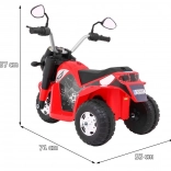 Ein leistungsstarker 6-V-Motor mit Knopfstart und Motorsoundeffekt, das vordere LED-Licht sowie der schwarze Kunstledersitz machen diese Maschine zu einem attraktiven und sicheren Fahrzeug für Kinder. Die Bedienung ist intuitiv – Vorwärts-/Rückwärtsfahrt, breite Räder und gute Fahrbarkeit auch auf weniger ebenem Untergrund.