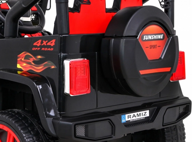 Das Auto ist mit Sicherheitsgurten und einer Fernbedienung ausgestattet, die es den Eltern ermöglicht, die Geschwindigkeit zu kontrollieren und das Auto bei Bedarf zu stoppen.