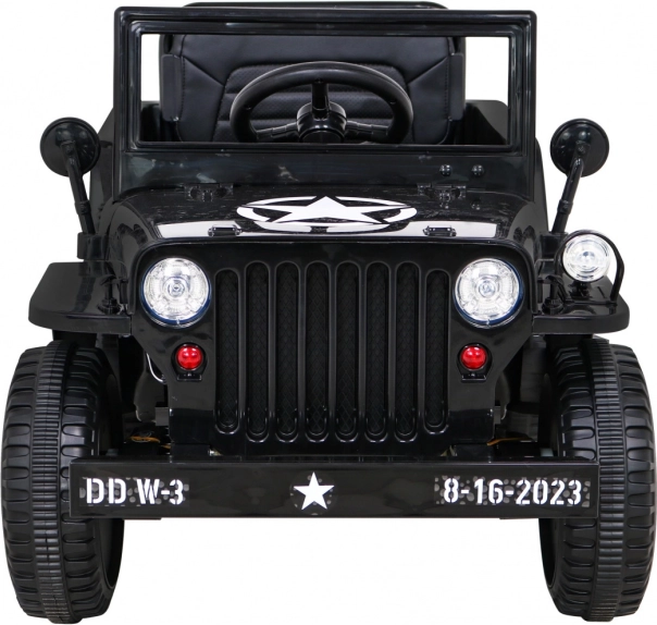 Dieses schwarze elektrische Kinderauto im Stil eines Militär-Jeeps begeistert kleine Abenteurer mit authentischem Look, funktionalen Scheinwerfern und einem bequemen Sitz aus belüftetem Eco-Leder. Dank 4x4-Antrieb, weichen EVA-Rädern 26 × 9 cm und Federung vorne wie hinten meistert es Unebenheiten und heimisches Gelände. Sanftes Anfahren und die Wahl der Fahrtrichtung vorwärts/rückwärts erhöhen Komfort und Sicherheit.