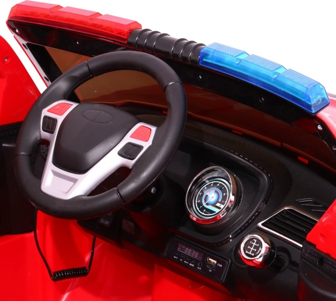 Im Innenraum überzeugen der belüftete Sitz aus Eco-Leder und die umfangreiche Multimedia-Ausstattung: FM-Radio, MP3, SD, AUX und USB, Lenkradtöne sowie vor allem ein Megafon mit Sirenen, verbunden mit den Bordlautsprechern. Öffnende Türen erleichtern den Einstieg, der praktische Transportgriff und Zusatzräder helfen beim Transport. Im Lieferumfang sind zudem „Feuerwehr“-Aufkleber zur Gestaltung, ein Ladegerät mit Indikator und eine Schutzhülle enthalten.
