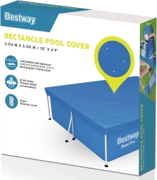 Die Abdeckung ist so konzipiert, dass sie Ihren rechteckigen Pool mit Rahmen und den Maßen 300 x 201 cm schützt. Spezielle Ablauflöcher in der Abdeckung verhindern die Ansammlung von Wasser. Dank integrierter Riemen befestigen Sie die Abdeckung einfach und sicher an der Poolkonstruktion.