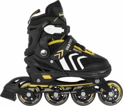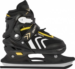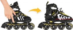 Die Aluminiumschiene und PU-Rollen 64×24 mm mit Härte 85A in Kombination mit ABEC-7-Lagern ermöglichen ein ruhiges, sicheres Gleiten. Auf dem Eis überzeugen die rostfreien Kufen, die langlebig und pflegeleicht sind. Der rechte Skate ist mit einer Bremse für sicheres Anhalten ausgestattet.