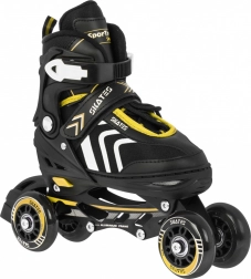 Dieses 4-in-1-Kinderset passt sich jeder Saison und jedem Können an. Im Handumdrehen verwandeln Sie es von Inlineskates in Rollschuhe oder Eislaufschuhe. Die fünfstufige Größenverstellung (34–38) mit einer Innenlänge von 20,5–23,5 cm wird von einer halbstarren Konstruktion begleitet, die dem Knöchel Halt gibt und für Fahrkomfort sorgt.