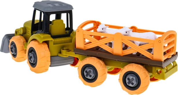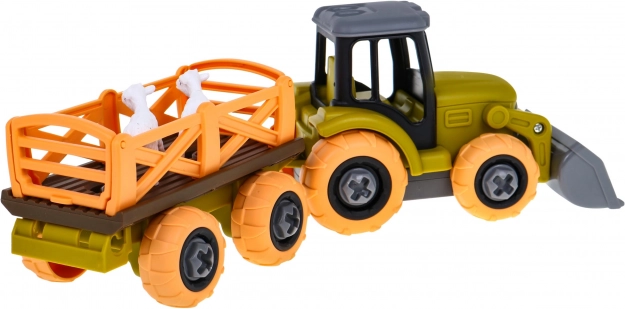 Dieser solide verarbeitete Traktor mit abnehmbarem Anhänger ist ideal für Kinder ab drei Jahren. Er wird in bereits montiertem Zustand geliefert, und sein Hauptvorteil besteht darin, dass er mit dem beiliegenden Schraubendreher zerlegt und wieder zusammengebaut werden kann. Benötigt keine Batterien, ist somit sicher und einfach zu verwenden. Die Details des Spielzeugs umfassen: