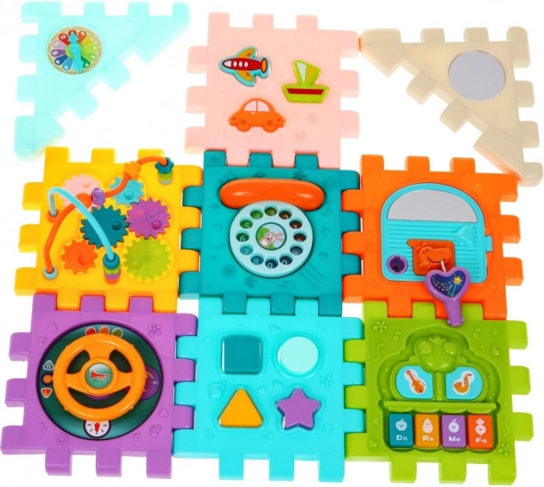 - Vielseitige Aktivität in einem Spielzeug – Musik, Lichter, motorische Elemente und logische Aufgaben.
