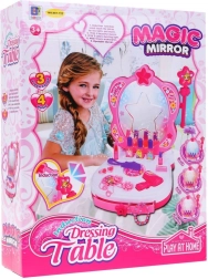 Diese interaktive rosa Schminkkommode mit Sternspiegel lässt jedes Kinderzimmer erstrahlen. Der Spiegel leuchtet in drei Farben (Blau, Rot, Rosa) und eine Auswahl von vier Melodien sorgt für magische Stimmung. Dank des umfangreichen Zubehörs können Kinder ihre Lieblingsrituale rund um Schönheit spielerisch nachahmen und in die Welt fantasievollen Schminkens und Frisierens eintauchen.