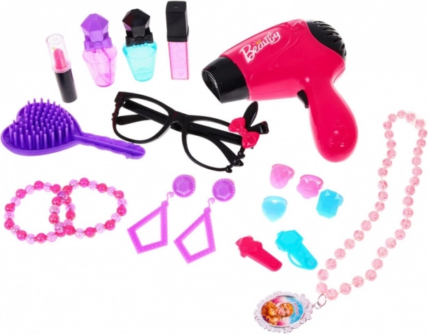 Die Schleife über dem herzförmigen Spiegel leuchtet und blinkt, begleitet von einer Melodie. So erleben Kinder ein realistisches und fesselndes Spiel im Beautysalon.