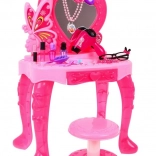 Die niedliche rosa Schminktisch-Toilette für kleine Stylistinnen bietet Licht- und Soundeffekte, einen interaktiven Föhn mit Luftstrom und ein umfangreiches Zubehörset für kreatives Spielen. Mit aufziehbarer Schublade für Schätze, stabilem Tischchen mit Spiegel und bequemer Hocker. Ideal für Kinder ab 3 Jahren, mit Fokus auf Fantasie, Rollenspiel und Feinmotorik.