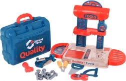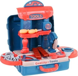 Das Werkzeugset im praktischen Koffer ist für Kinder ab 3 Jahren gedacht. Der Koffer ist mit einem bequemen Griff ausgestattet und dient auch als Basis für den Arbeitstisch. Die Werkbank kann aufrecht auf den Koffer gestellt oder flach ausgeklappt werden. Nach dem Spielen können alle Werkzeuge im Koffer verstaut und überallhin mitgenommen werden.