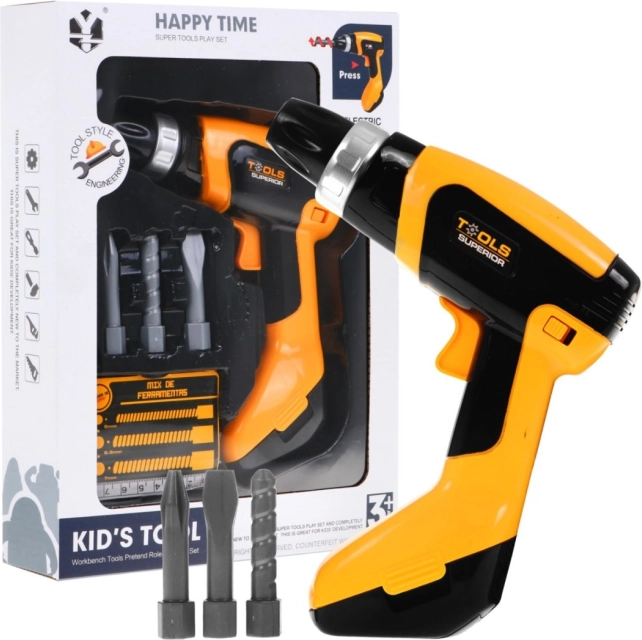 Diese elektrische Kinderbohrmaschine sieht aus und funktioniert wie eine echte. Kinder können die Bohrmaschine zum Anziehen und Lösen von Schrauben oder zum Bohren verwenden. Austauschbare Aufsätze machen das Spiel noch unterhaltsamer.