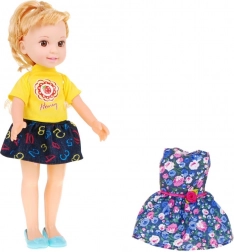 Die Puppe hat ein Basis-Outfit und zusätzlich ein geblümtes Kleid – Kinder können die Teile je nach Stimmung und Geschichte kombinieren.