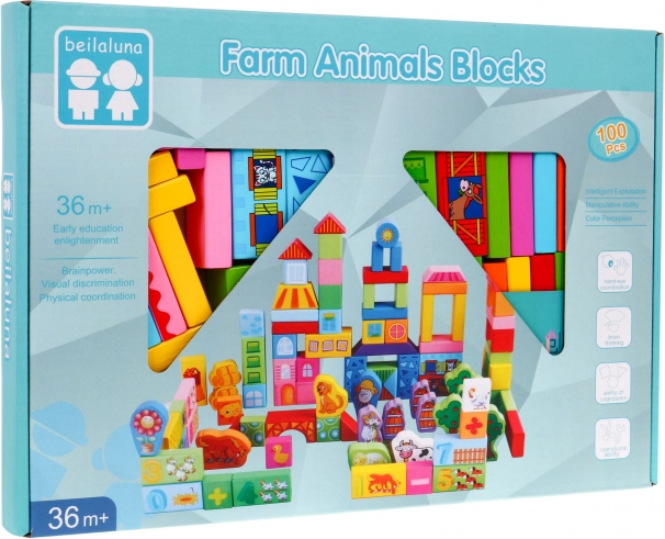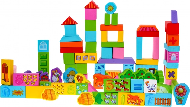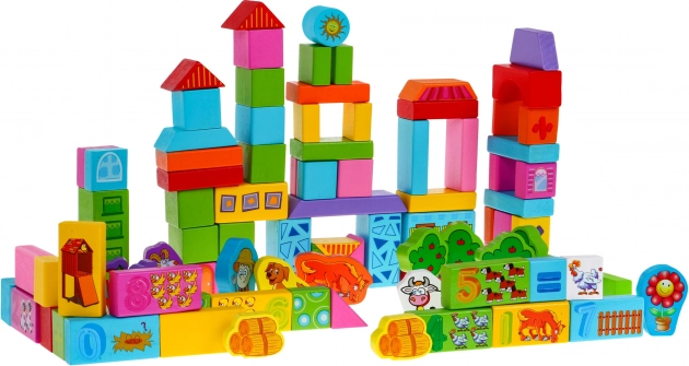 - 100 Holzbausteine in verschiedenen Farben und Formen