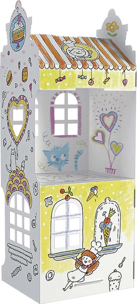 Entdecken Sie kreativen Spaß mit einem Kartonhäuschen zum Ausmalen, das nach dem Zusammenbau das Kinderzimmer in ein kleines Städtchen verwandelt. Kinder können Buntstifte, Filzstifte und Farben verwenden und nach dem Zusammenbau stundenlang damit spielen.