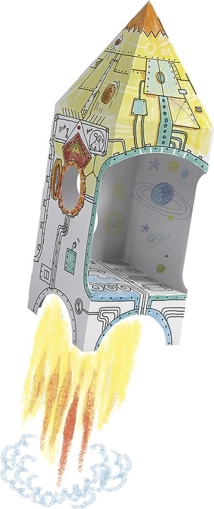 Die Rakete bietet freie Flächen, die sich für Buntstifte, Filzstifte und Farben eignen. Kinder gestalten ihr eigenes einzigartiges Design und können direkt danach zu einer Weltraummission aufbrechen.