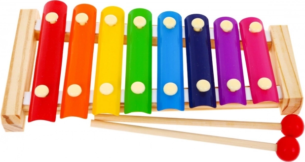 | Das hölzerne, sichere Xylophon ist eine perfekte Idee für das erste Instrument Ihres Kindes. Das Spielzeug ist für Kinder ab 3 Jahren geeignet. Das Xylophon besteht aus kindgerechten, sicheren Materialien: Die hölzerne Basis des Instruments hat keine scharfen Kanten, die Metallplättchen sind mit sicheren, farbigen Lacken beschichtet und die Schlägel sind aus Holz. Dieses Lern- und Musikinstrument lehrt und unterhält zugleich, führt Ihr Kind in die Welt der Musik ein, fördert das Erkennen von Klängen und den Sinn für Rhythmus, regt die Kreativität an und verbessert die Konzentration. | |
