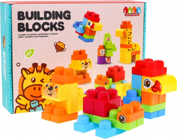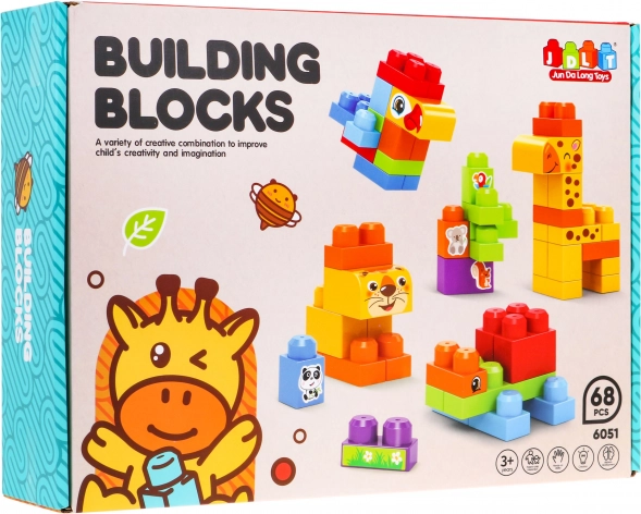 Bauset für Kinder, 68 Teile – Zootiere mit Aufklebern