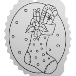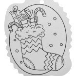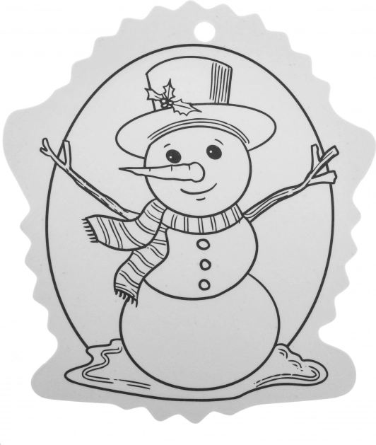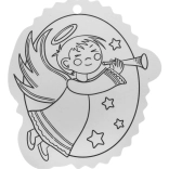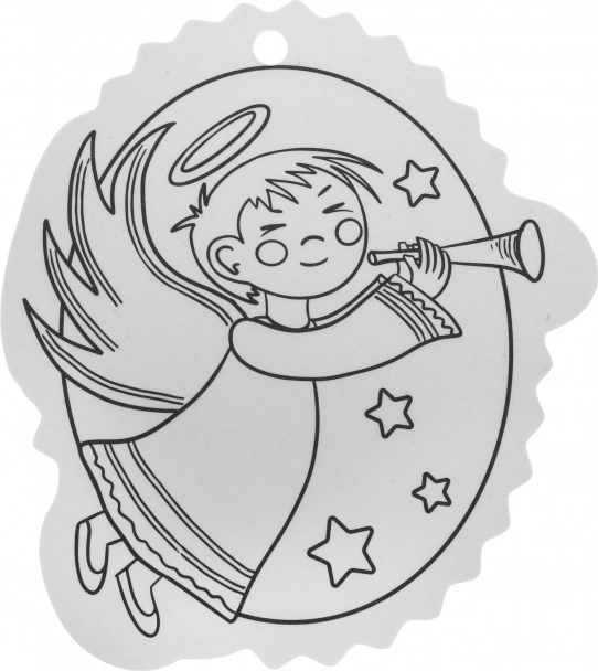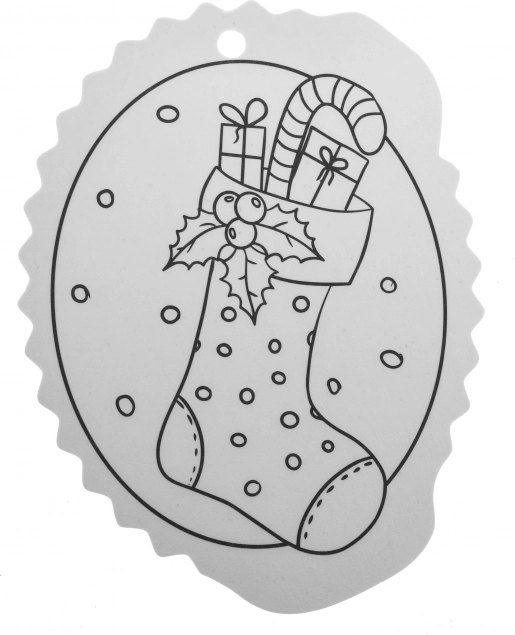 Schwarz-weiße Konturen erleichtern das Ausmalen und eine Öffnung an der Oberseite sorgt für schnelles Aufhängen am Baum oder an Geschenken.