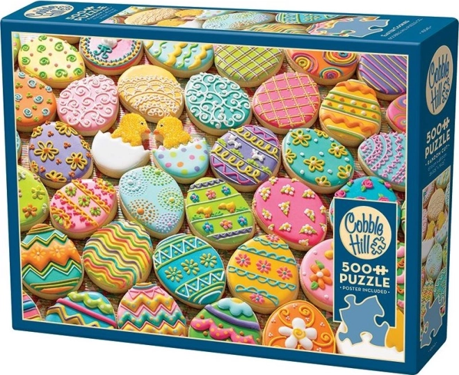 Das COBBLE HILL Puzzle mit fröhlichen Osterkeksen erfreut alle Liebhaber von Herausforderungen. Der spezielle, unkonventionelle Stanzschnitt folgt keinem üblichen Raster, sodass Ecken und Kanten nicht immer in einer Linie liegen und die Teile außergewöhnliche Formen haben. Dadurch ist das Zusammensetzen unterhaltsamer und anspruchsvoller als bei klassischen Puzzles.