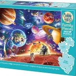 Das Familienpuzzle „Reise durchs Weltall“ von COBBLE HILL ist so konzipiert, dass alle mitmachen können – von den Jüngsten bis zu den Großeltern. In den einzelnen Bildbereichen finden Sie große, mittlere und kleine Teile, sodass jeder die passende Schwierigkeit für sich wählen kann.