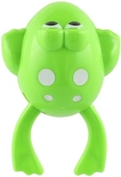 Der Frosch ist aus robustem Kunststoff gefertigt und hat eine Größe von 10 cm, was die Handhabung für kleine Kinderhände erleichtert.