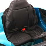 Sitz aus schwarzem Ökoleder mit Verstellung, Mehrpunktgurte sowie ein Audio-Panel mit MP3/USB/TF/AUX und Sounds am Lenkrad für maximalen Spaß.
