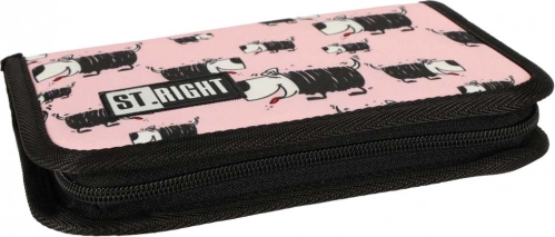 Praktisches Schulmäppchen mit zwei Klappen im rosa Design mit Hunden. Bietet eine übersichtliche Anordnung der Schulutensilien, ist mit Reißverschluss verschließbar und hat einen ergonomischen Zipper. Innen finden Sie Trennfächer und elastische Halterungen für Filzstifte, Bleistifte und Lineal, außerdem sind eine Einmaleins-Tabelle und ein Stundenplan enthalten.