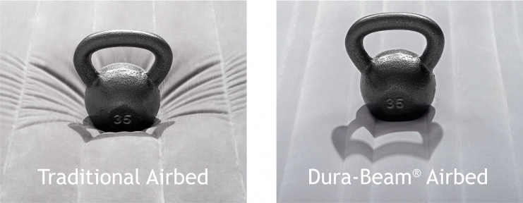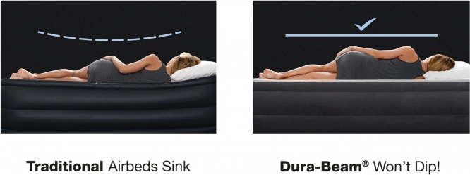 Genießen Sie den Komfort eines stabilen und dennoch bequemen Luftbetts, das sowohl für Gäste als auch für den Urlaub geeignet ist. Dank der Fiber-Tech-Technologie mit Polyesterfasern verfügt die Matratze über höhere Festigkeit, längere Lebensdauer und eine gleichmäßige Gewichtsverteilung über die gesamte Fläche. Die gewellte Oberfläche und die Kammerkonstruktion helfen, die richtige Wirbelsäulenposition zu halten und verringern das Risiko von Rücken- und Nackenschmerzen.