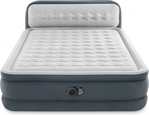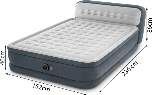 Das doppelwandige aufblasbare Bett von INTEX mit Dura-Beam Fiber-Tech-Technologie bietet eine große Liegefläche, ein integriertes Kopfteil und eine eingebaute elektrische Pumpe für schnelles Auf- und Abpumpen. Die Höhe von 46 cm über dem Boden und die Oberfläche aus weichem Velours sorgen für Komfort, Stabilität und ein gepflegtes Erscheinungsbild. Die maximale Belastbarkeit von 272 kg gewährleistet zuverlässigen Schlaf für zwei Personen.