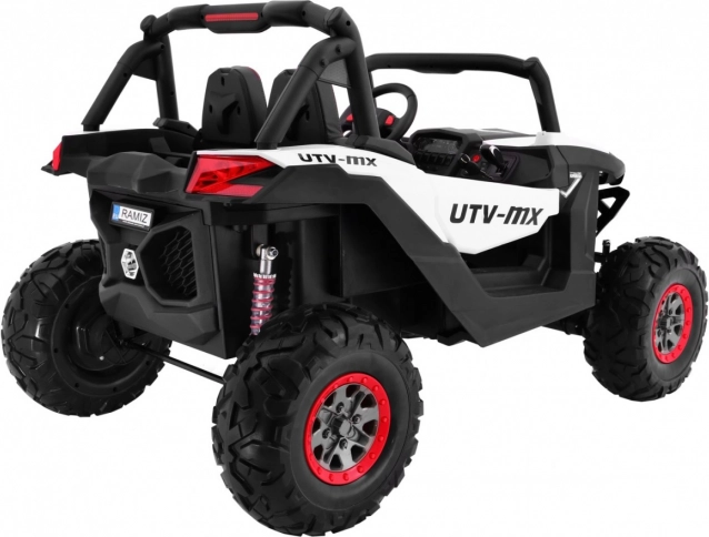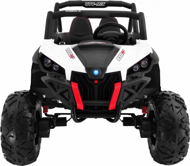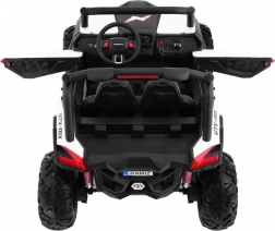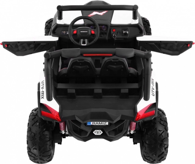 Die Sicherheit liegt in den Händen der Eltern dank 2,4-GHz-Fernbedienung mit drei Geschwindigkeiten und Notstopp-STOP-Funktion. Mit dem 2×4/4×4-Schalter passen Sie die Leistung an Gelände und Reichweite an. LED-Beleuchtung vorne und hinten erhöht die Sichtbarkeit und verleiht den authentischen Look eines echten UTV.