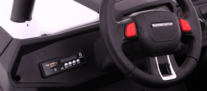 Das Multimedia-Panel spielt Lieblingssongs über Bluetooth, USB, SD oder AUX ab. Sounds im Lenkrad und LED-Lichter sorgen für ein realistisches Erlebnis.