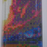 Vorgehensweise: Die Oberseite der Leinwand ist mit Kleber beschichtet und mit einer transparenten Folie abgedeckt. Entfernen Sie die Folie schrittweise, um eine Verschmutzung der Klebeschicht zu vermeiden. Die Leinwand enthält Markierungen für die einzelnen Beutel mit Steinchen. Schütten Sie die Steinchen in die Schale und verwenden Sie den mit Wachs versehenen Stift zur Applikation. Nach Abschluss einer Farbe die Steinchen wieder in den Beutel zurückfüllen und mit der nächsten fortfahren.