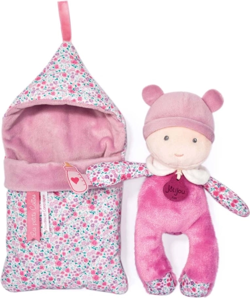 Das Doudou Jolijou Baby im bequemen Einschlaf-Schlafsack ist für die ersten Kuscheleinheiten gemacht. Der weiche, hochwertige Plüsch fühlt sich angenehm an, der Schlafsack ist farblich auf den Pyjama mit Blumenmuster abgestimmt und das Baby kann jederzeit zum separaten Spielen aus dem Schlafsack genommen werden. Eine kleine Flasche für realistisches Füttern ist ebenfalls enthalten.
