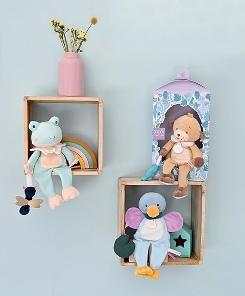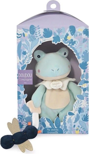 In diesem Geschenkset finden Sie einen Frosch mit Libelle, der perfekt für Kinder ab der Geburt ist. Er wurde so gestaltet, dass er Komfort und Weichheit für kleine Hände bietet: