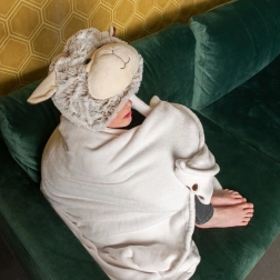 Diese niedliche, wärmende Kapuzendecke macht jedes Einkuscheln zum Abenteuer. Die plüschige Kapuze mit Öhrchen und Schafsgesicht und die praktischen Pfoten-Taschen beflügeln die Fantasie und halten die Hände schön warm. Der leichte, atmungsaktive Fleece fühlt sich angenehm an und wärmt zuverlässig.