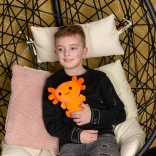 Dieser orangefarbene „Wasserdrache“ stellt den Mexikanischen Axolotl in einem freundlichen Design dar, das Kinder sofort ins Herz schließen. Er besteht aus einem angenehmen und strapazierfähigen Material, eignet sich hervorragend zum Kuscheln und als beruhigender Begleiter im Bettchen. Dank der Zertifizierung ab der Geburt ist er auch für die Allerkleinsten sicher.
